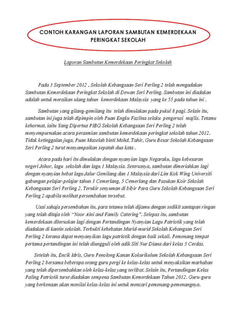 Contoh Karangan Laporan Sambutan Kemerdekaan Peringkat Sekolah Pdf