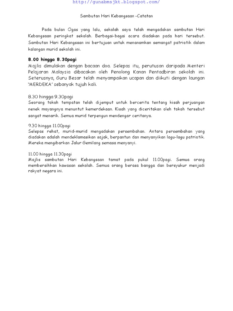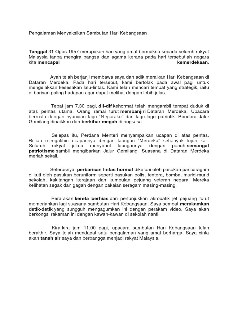 Pengalaman Menyaksikan Sambutan Hari Kebangsaan Pdf